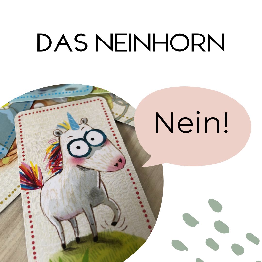 Die Geschichten vom Neinhorn sind aus meiner Arbeit nicht mehr wegzudenken. So war es also keine Überraschung, dass ich das dazugehörige Kartenspiel letztes Jahr zu meinem Geburtstag bekam. Nach exzessivem Spielen zu Hause landeten die Karten ganz intuitiv in meiner Kliniktasche (mit der ich meine Materialien jede Woche mit ins Kinderkrankenhaus nehme) – zunächst nur für eine bestimmte Situation und zum Ausprobieren. Mittlerweile kann ich mir keinen Kinderonkologiebesuch mehr ohne die Neinhornkarten vorstellen. Und das nicht nur, weil wir damit so viel Spaß haben, sondern auch, weil ich mit diesem Material so einige Stärken mit sich bringt: