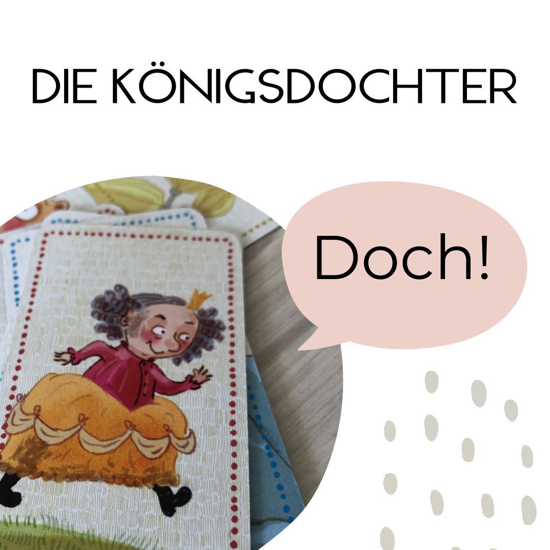 Wie steht ein gleichgültiger NaHund? Wie sieht die KönigsDOCHter aus, wenn sie immer wieder „doch!“ sagt? Nehmt Euch nach und nach eine Karte vor und sucht eine Körperhaltung für die jeweilige Figur aus? Was machen die Arme, die Beine, die Körperspannung, die Schultern? Wohin geht der Blick? Findet alle eine eigene Körperhaltung und probiert dann, den „Text“ der Figur zu sprechen? Verändert sich vielleicht sogar Eure Stimme? Was macht das mit Eurer Stimmung? Welche Gesten, also Arm- und Handbewegungen, passen dazu?